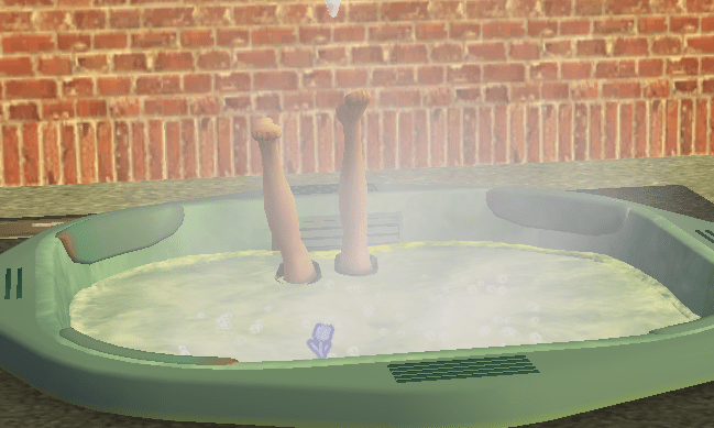 Chaz decided to find a compatible sim through the crystal ball because it’s much easier to get in a ladies panties when you know you’re compatible. He and Jan are very compatible. Also both romance sims. They weren’t even close to friends and they hopped into the hotub.